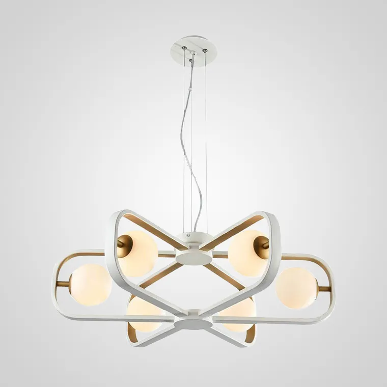 Люстра в современном стиле с плафонами шарами, внутри воздушного каркаса