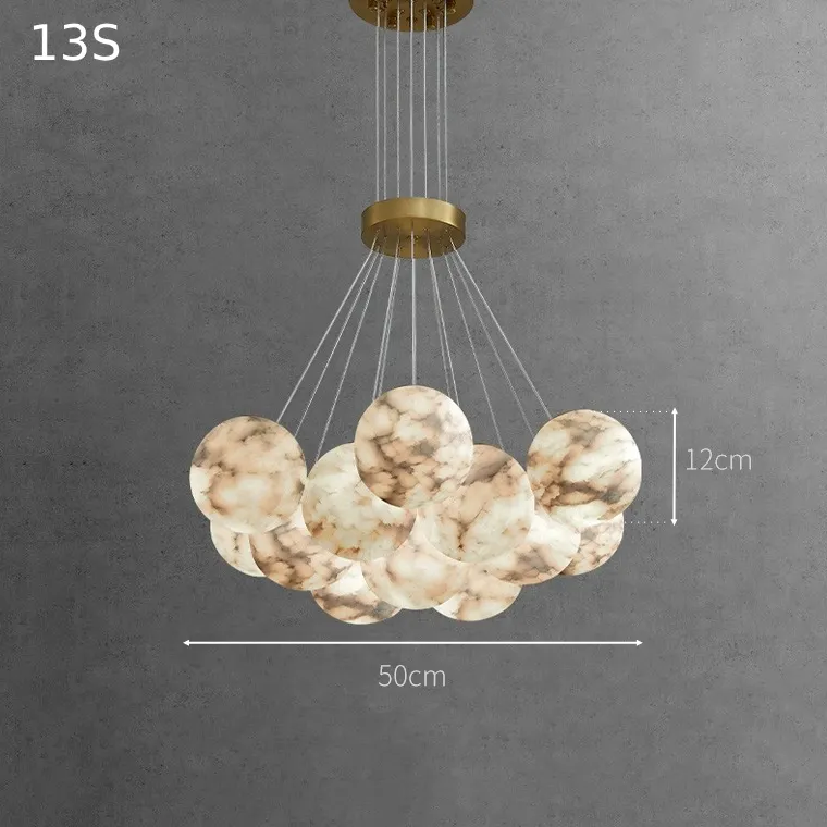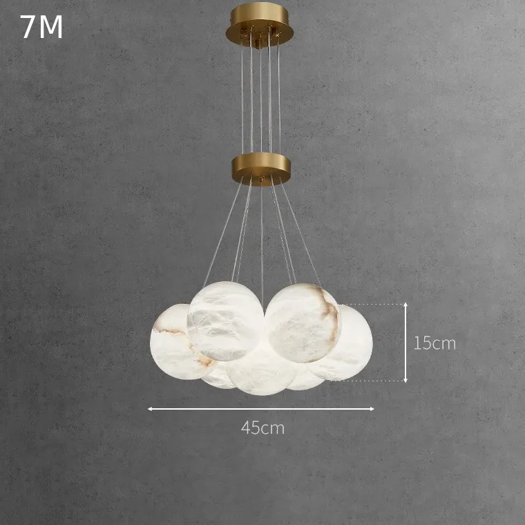 Серия подвесных люстр с мраморными плафонами шарообразной формы