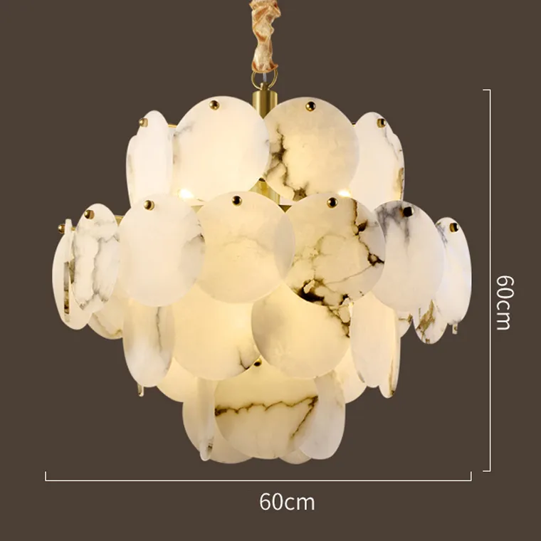 Люстра в стиле постмодерн с подвесными дисками из мрамора