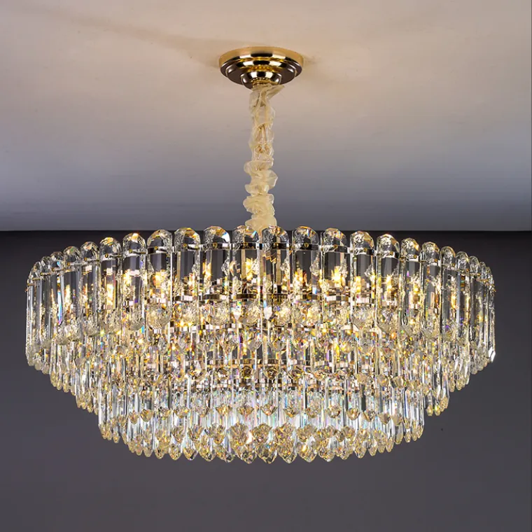 Серия многоярусных люстр с многогранными рассеивателями из хрусталя с эффектом льда