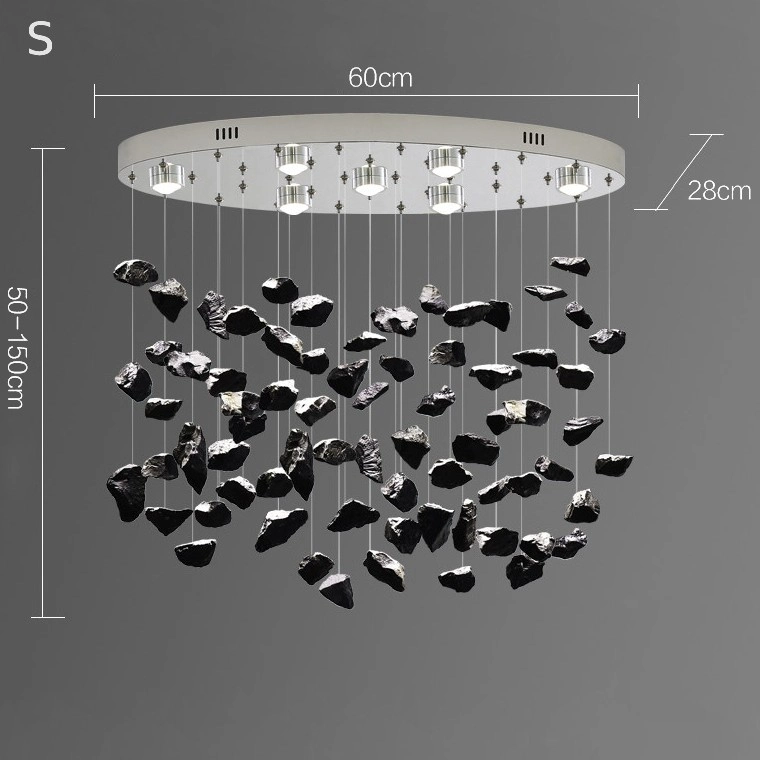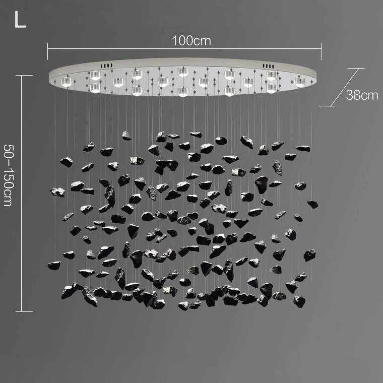 Серия светодиодных инсталляций из подвесных элементов неправильной формы из цветного искусственного камня с точечными источниками света на потолочном основании