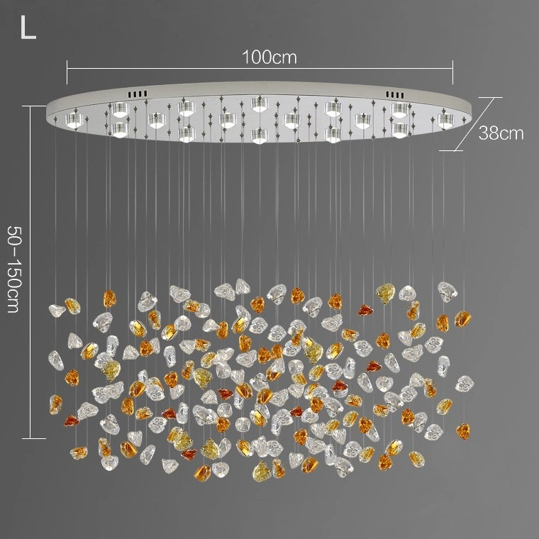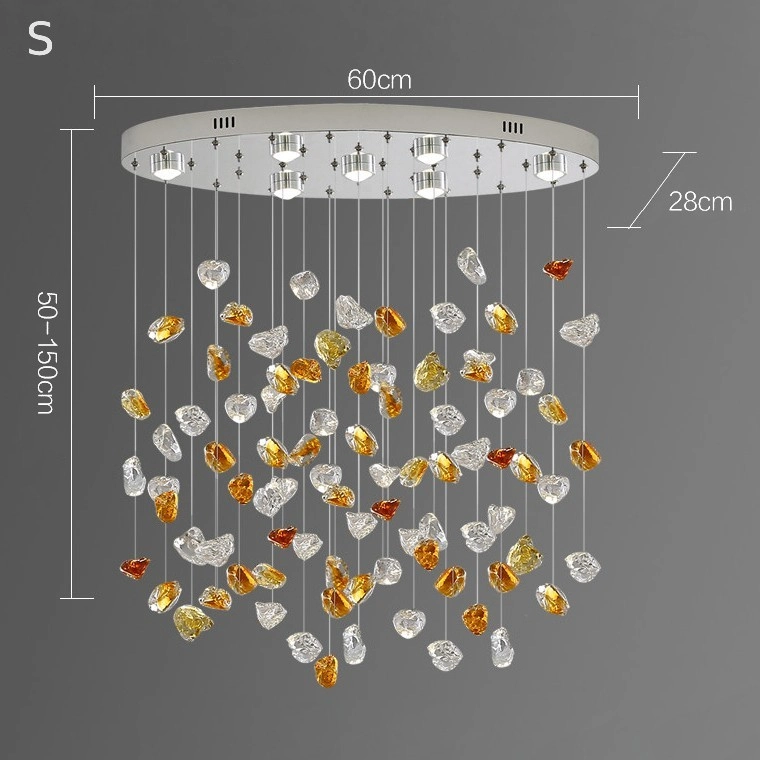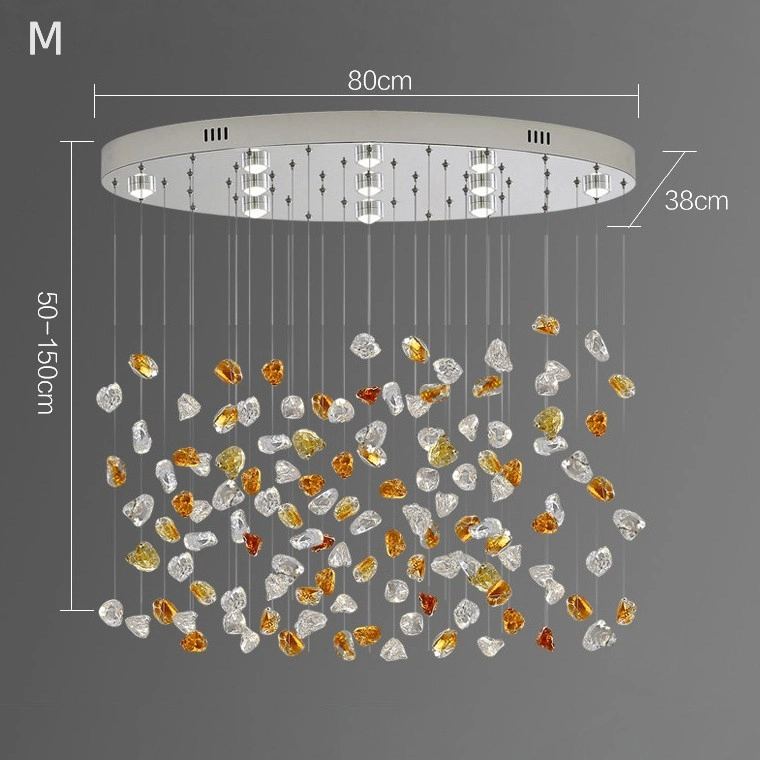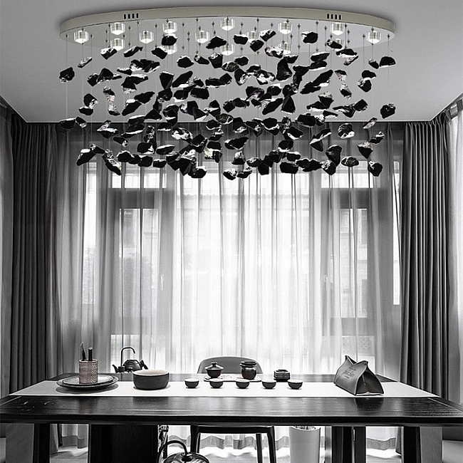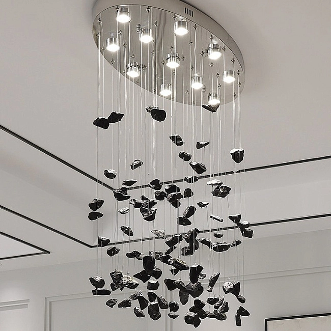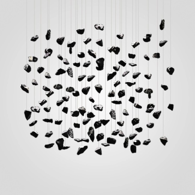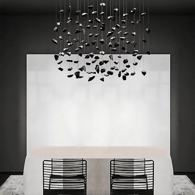 Серия светодиодных инсталляций из подвесных элементов неправильной формы из прозрачного и цветного стекла с точечными источниками света на потолочном основании