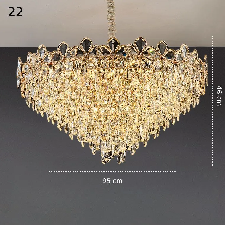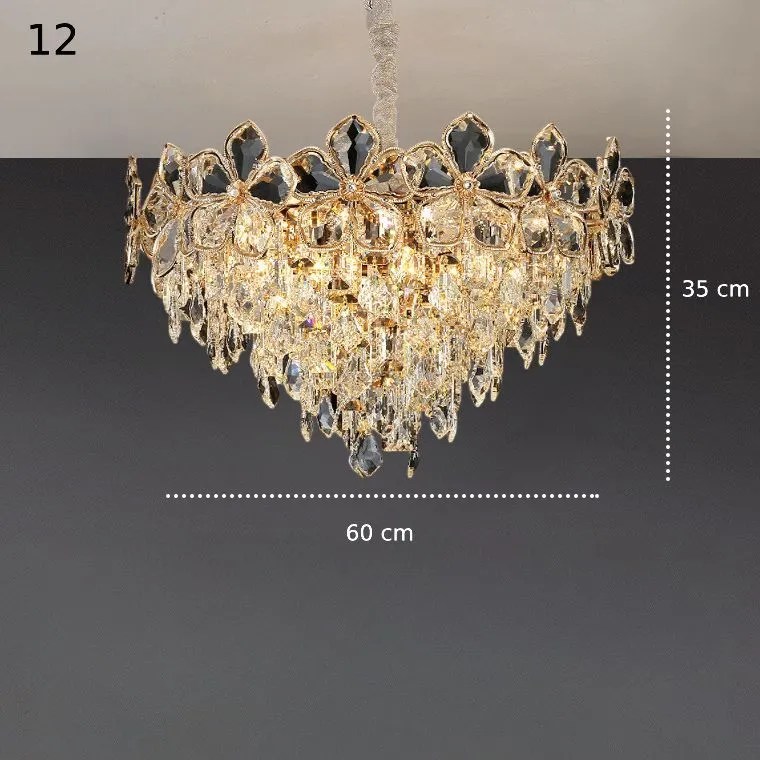 Серия люстр с декором в виде хрустальных цветов и подвесок на металлическом каркасе