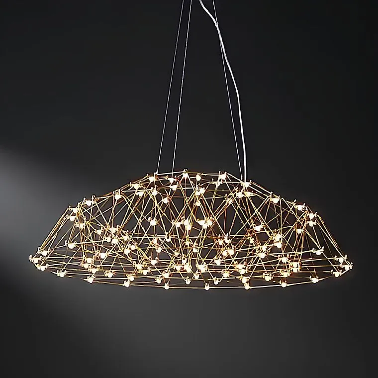 Серия подвесных люстр со светодиодными источниками света на ажурном металлическом каркасе купольной формы. Погрузитесь в магию света и гармонии с нашей новой коллекцией впечатляющих подвесных люстр! Эти изысканные светильники, украшенные светодиодными точечными источниками света, представляют собой настоящие произведения искусства.
