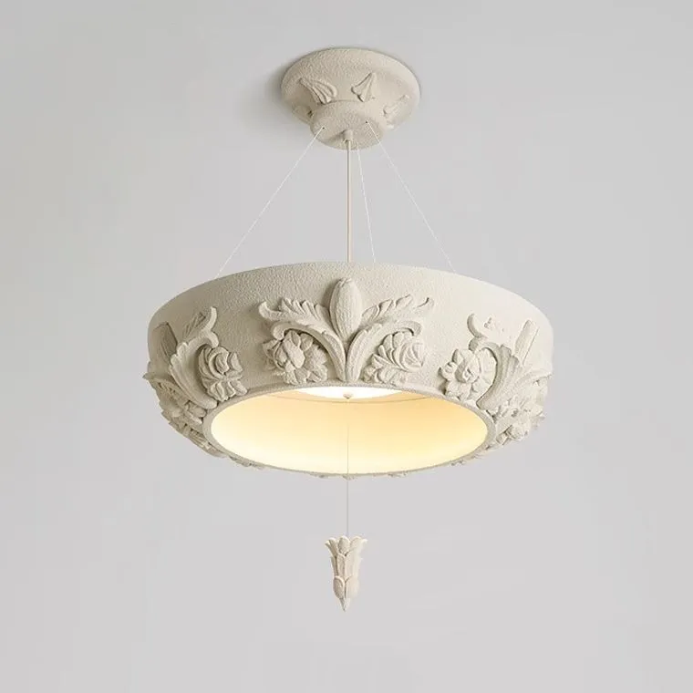Каждая люстра из этой серии сочетает в себе классические элементы и современные технологии. Круглая форма и роскошная имитация лепнины напоминают о временах изысканного барокко, добавляя нотку аристократичности вашему дому. Декоративный подвес на струне, исходящий из центра люстры, придает ей особое очарование, делая композицию завершенной и гармоничной.