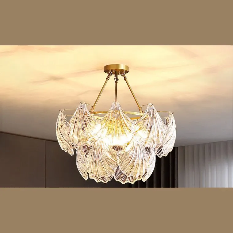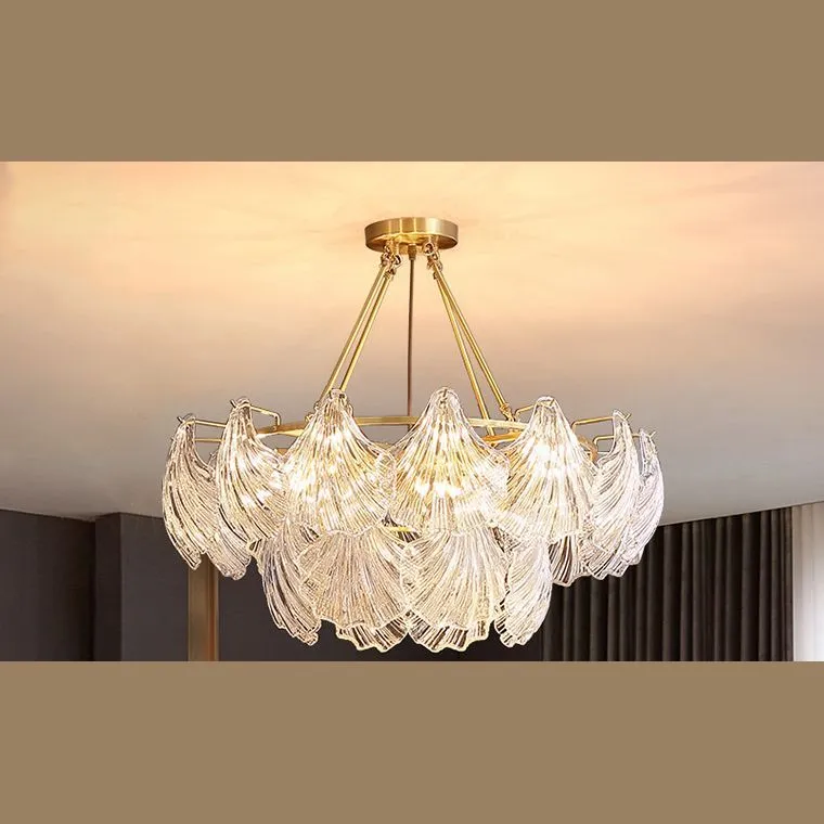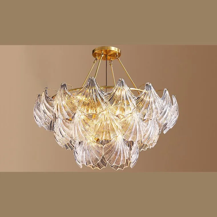 Серия многоярусных люстр со стеклянными плафонами в форме ракушек