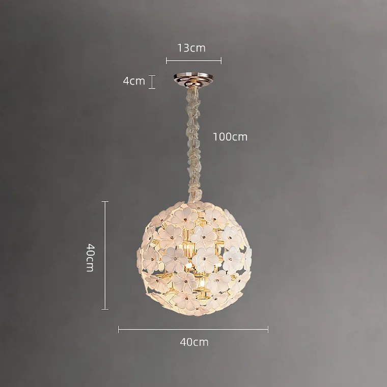 Подвесная люстра в форме шара с цветочным декором из молочного стекла