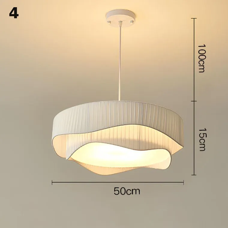 Подвесная люстра с двойным рельефным абажуром волнообразной формы из текстиля. Представьте себе мягкое и волшебное освещение, которое окутывает вашу спальню, гостиную или кухню. В самом центре этого впечатляющего пространства вы встретите подвесную люстру с двойным рельефным абажуром, создающим волнообразную форму из нежного текстиля.