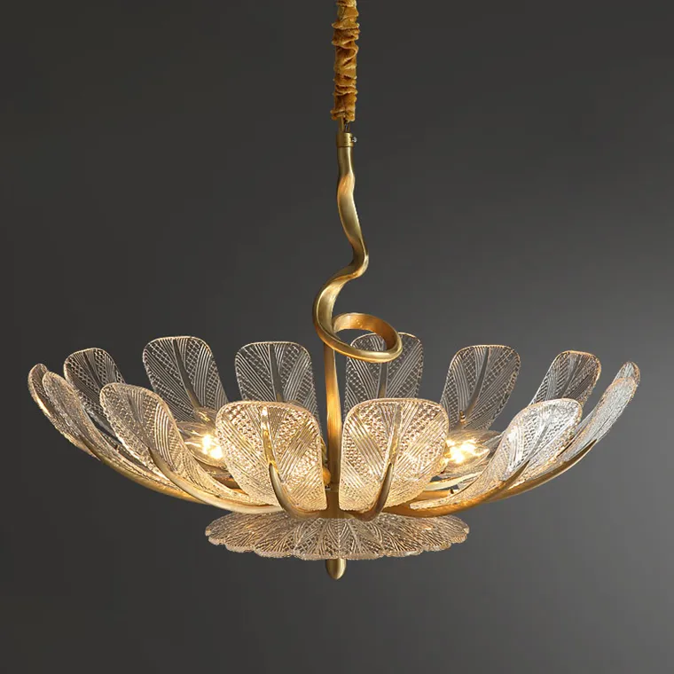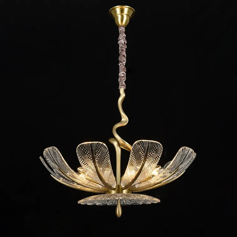 Подвесная дизайнерская люстра с изогнутыми вверх пластинчатыми плафонами в виде листьев