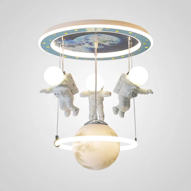 Потолочный светильник с фигурками астронавтов и центральным шаром стилизованным под Луну внутри светящегося кольца