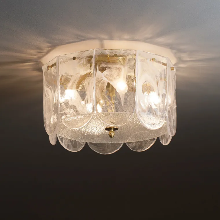 Серия потолочных люстр с абажурами из округлых стеклянных пластин с эффектом «Белый дым»