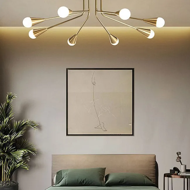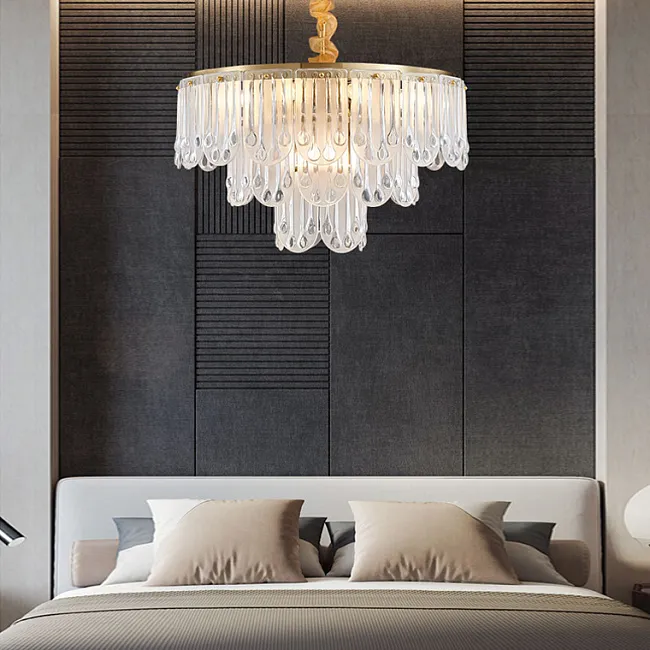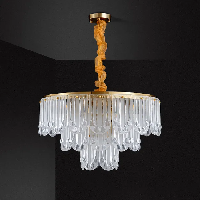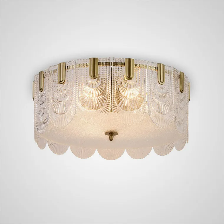 Потолочная люстра с абажуром из ажурных стеклянных пластин округлой формы