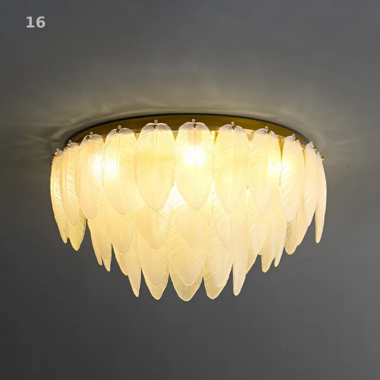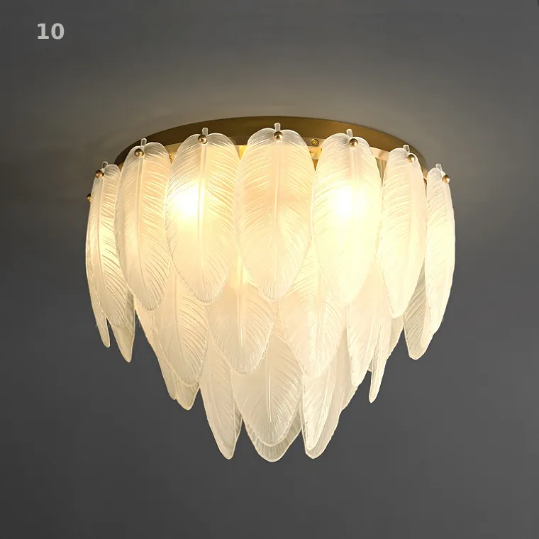 Серия потолочных люстр с каскадным абажуром из белых стеклянных перьев