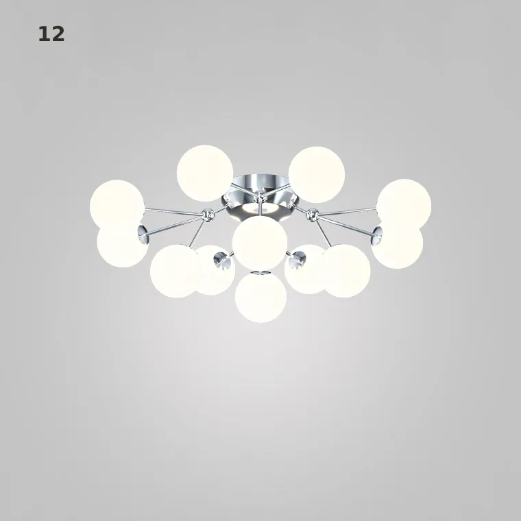 Серия потолочных светодиодных люстр со стеклянными шарообразными плафонами на лучевом каркасе с клипами