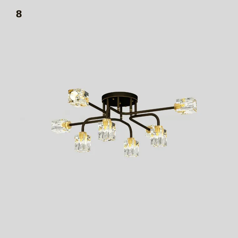 Серия потолочных люстр с разнонаправленными кристальными плафонами кубической формы