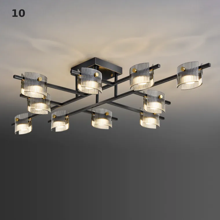 Серия потолочных светодиодных люстр с прямоугольными рассеивателями из рельефного стекла