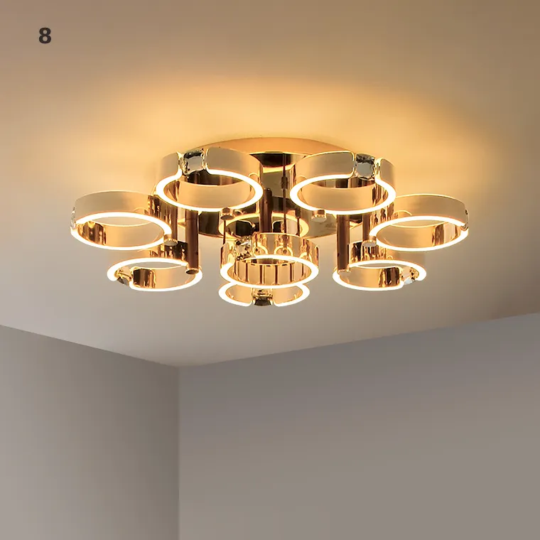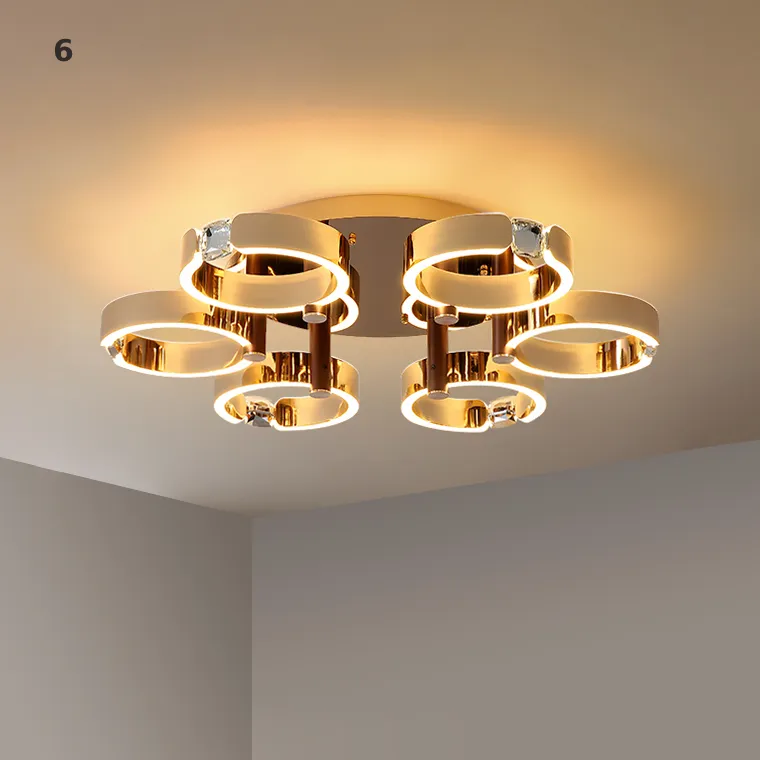 Серия потолочных светодиодных люстр с хрустальными рассеивателями в виде кристаллов на кольцевых источниках