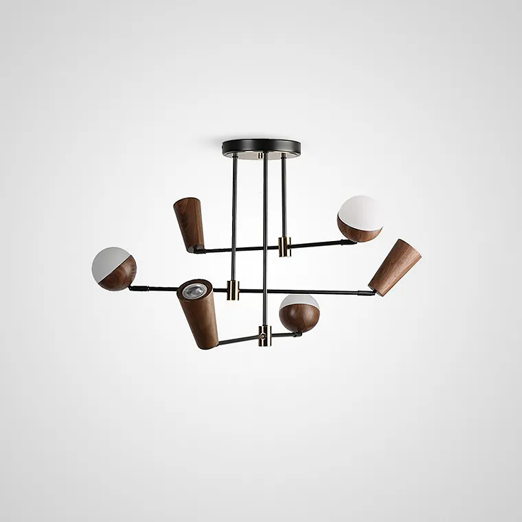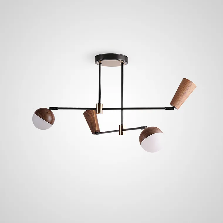 Серия дизайнерских люстр с поворотными деревянными плафонами шарообразной и трапециевидной формы