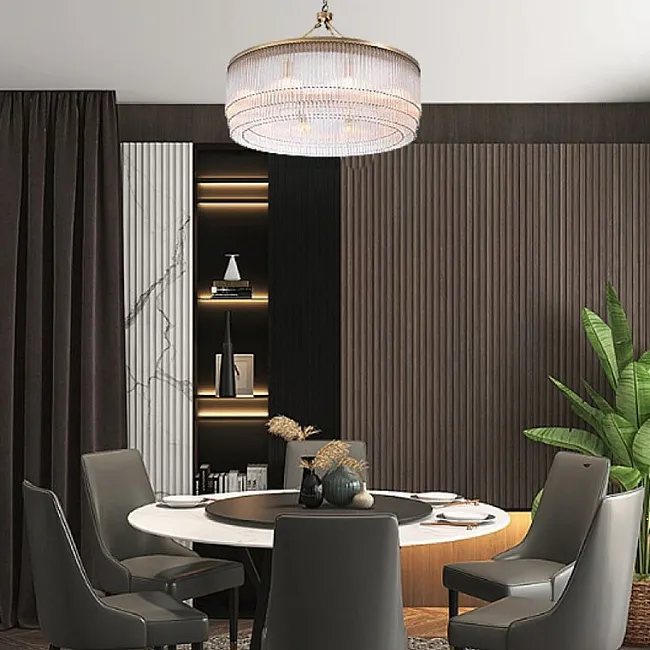 Серия потолочных люстр с трубчатыми фигурными элементами из цветного стекла, расположенными в несколько ярусов