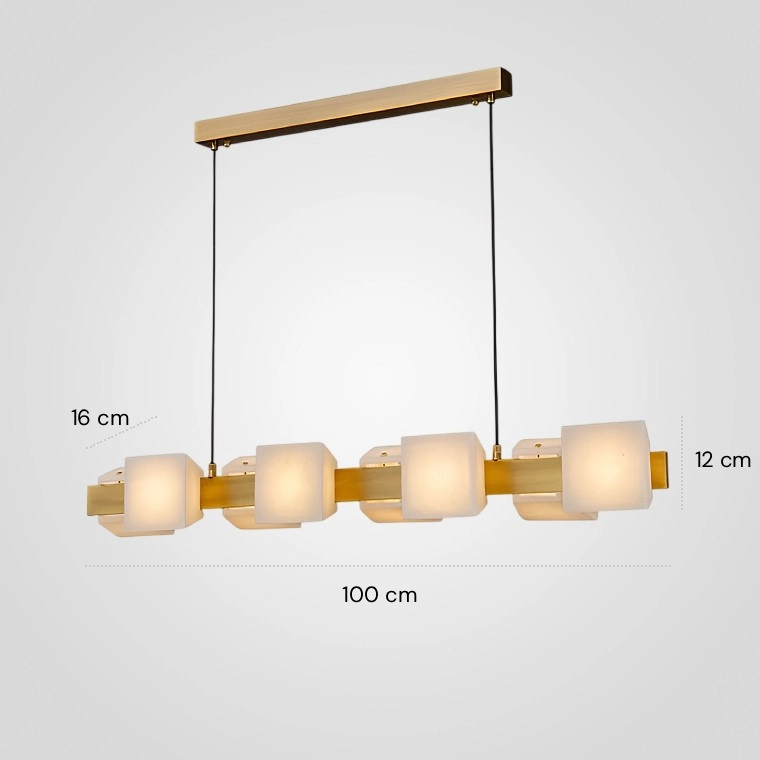 Реечная люстра с мраморными трапецевидными плафонами на металлическом каркасе
