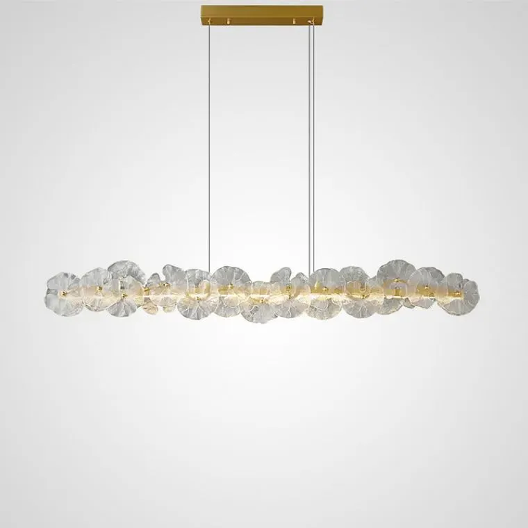 Главной особенностью AURELIUS LONG являются детализированные прозрачные листья лотоса, которые сделаны из высококачественного стекла. Каждый лист имеет латунную сердцевину, которая придает им особую привлекательность и натуралистичность. Это придает люстре особую изысканность, которая идеально сочетается с любым интерьером.