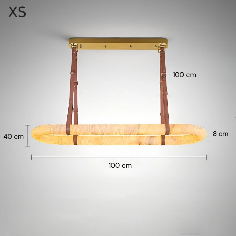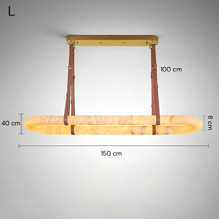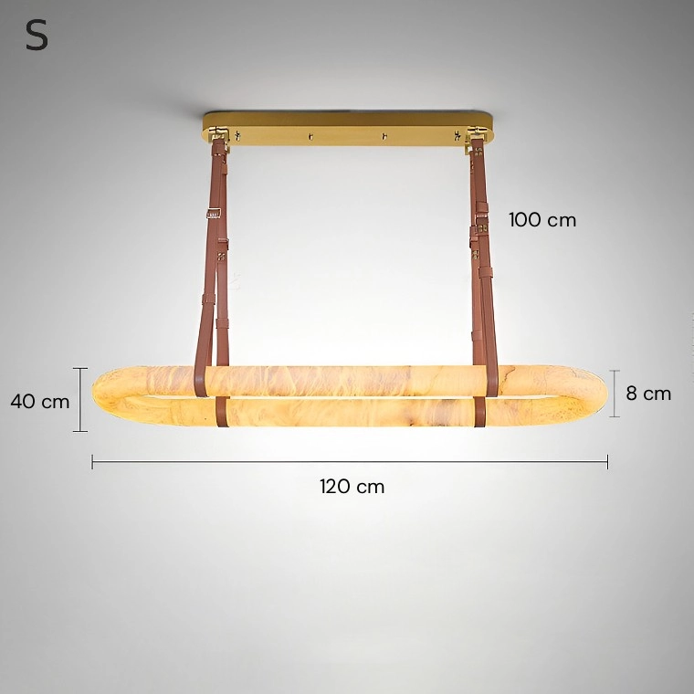 Серия подвесных светодиодных люстр с закольцованным овальным корпусом из натурального мрамора на кожаных ремнях
