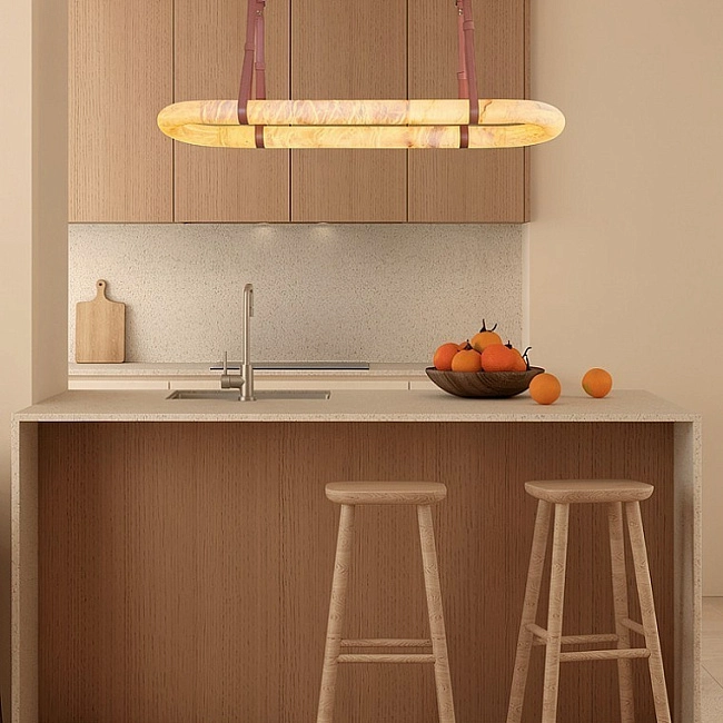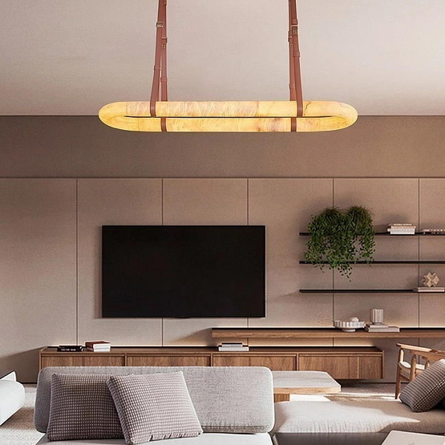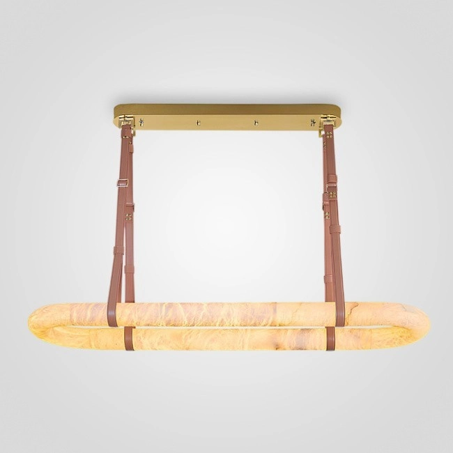 Серия подвесных светодиодных люстр с закольцованным мраморным корпусом на кожаных ремнях