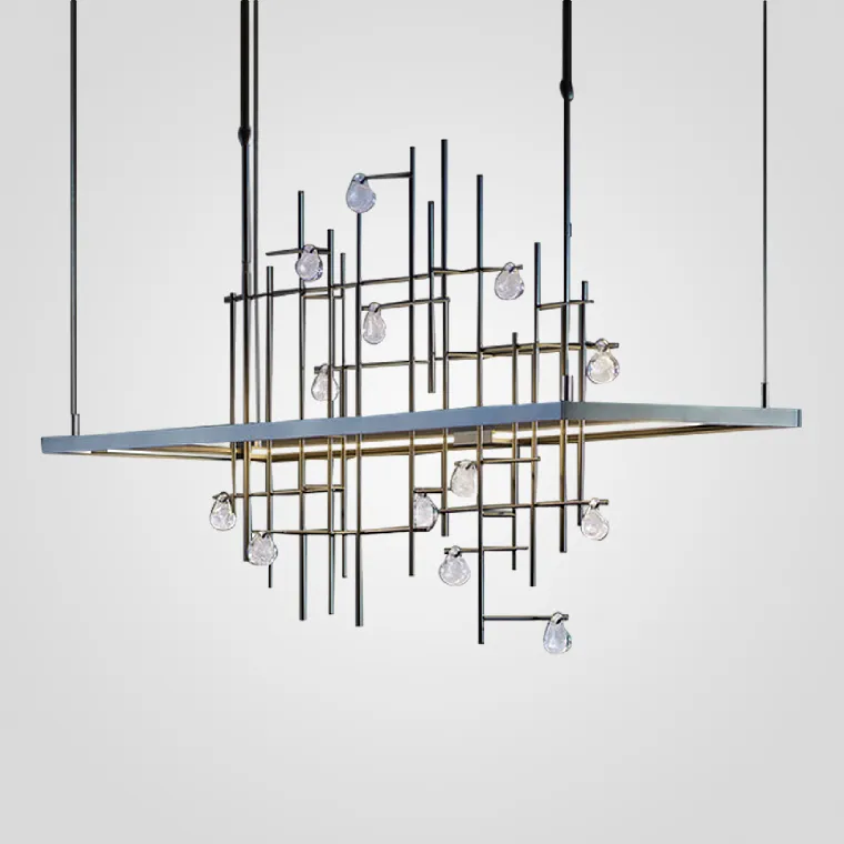 Реечный светодиодный светильник с каплевидными плафонами из хрусталя на решетчатом каркасе