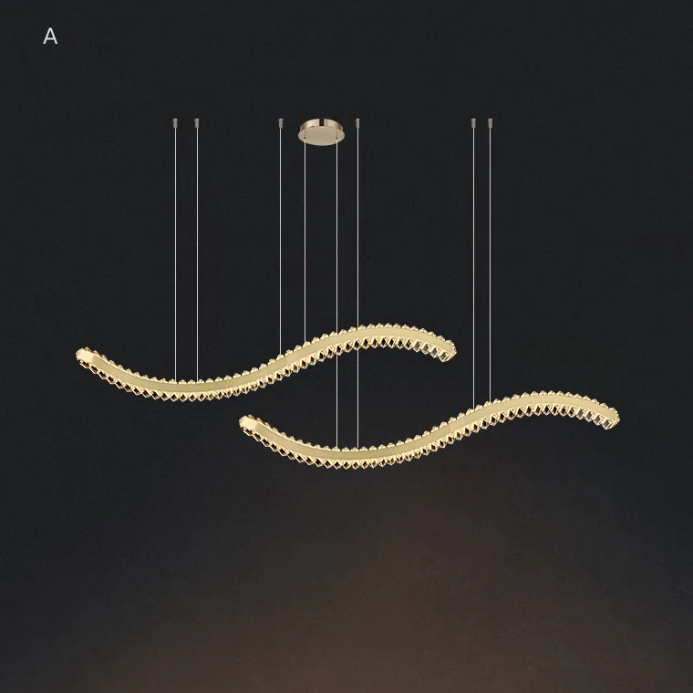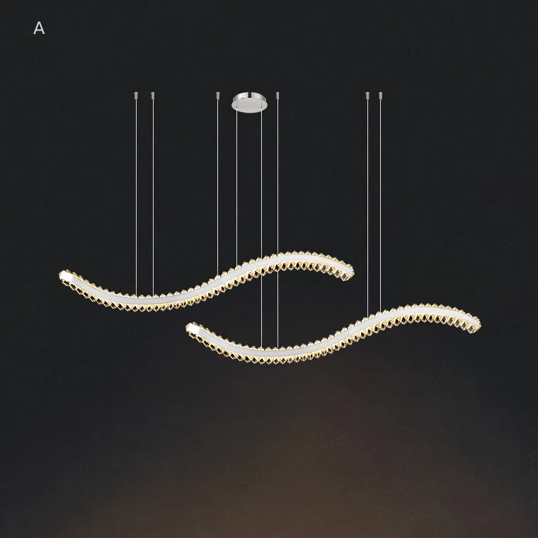 Серия светодиодных светильников в виде комбинации двух волнообразных реек с хрустальными рассеивателями