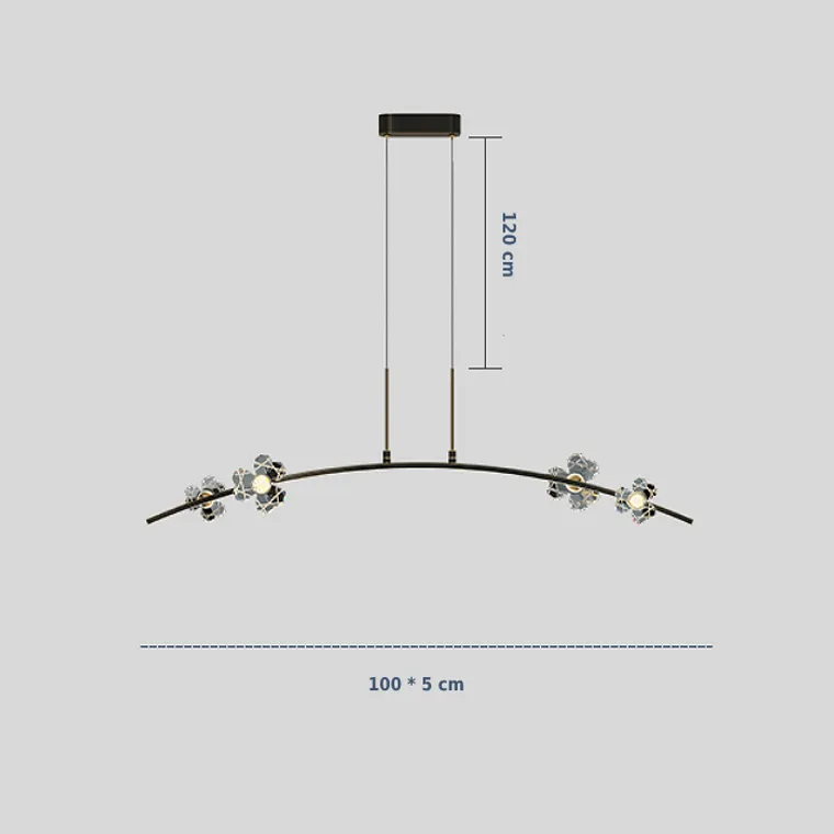 Серия реечных светодиодных светильников на дугообразном каркасе с прозрачными рассеивателями, стилизованными под цветы со светящейся сердцевиной