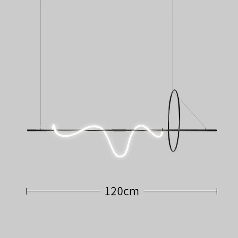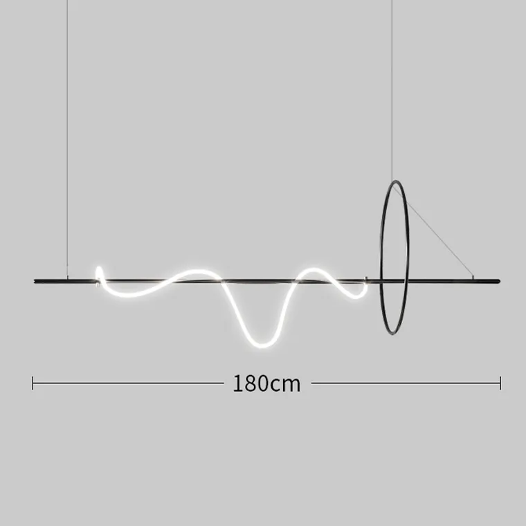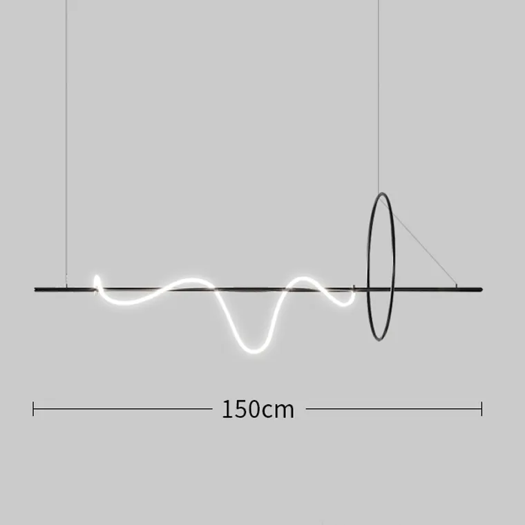 Серия реечных светильников в виде комбинации кольца и горизонтальной рейки, свободно обвитой светодиодным шнуром
