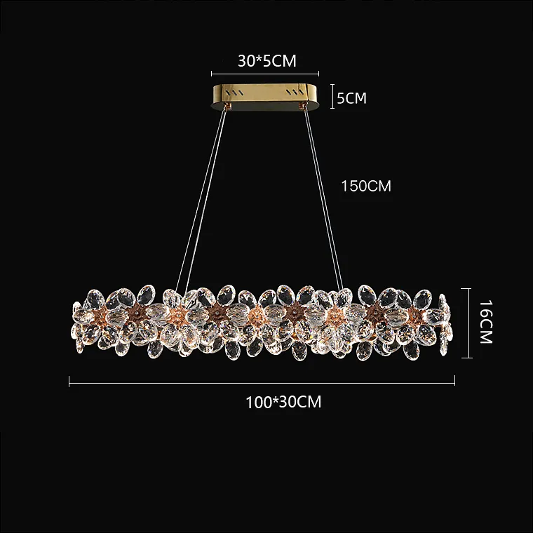 Реечный светодиодный светильник с цветочным узором из ограненного хрусталя на металлическом каркасе