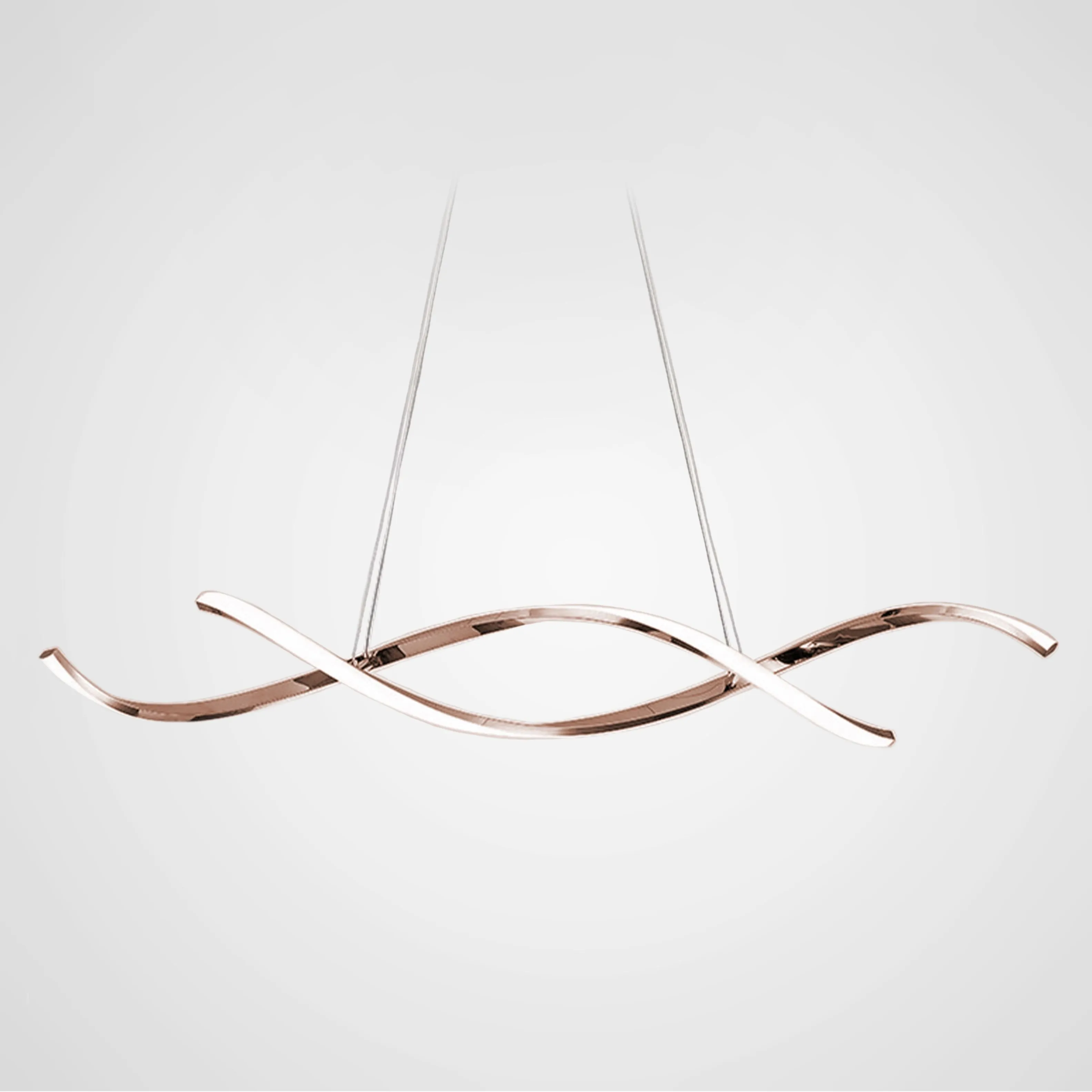 Современный стиль, мне такое нравится в последнее время, поэтому выбрала именно эту реечную люстру. Две переплетённых друг с другом спирали. Они как будто в воздухе зависли, потому что подвесы тонкие, почти невидно их. Понравилось, что светодиодные лампочки, они меньше едят электричества и горят дольше. Мне больше всего понравился оттенок розовое золото. Приятный, нежный такой, не вульгарный.