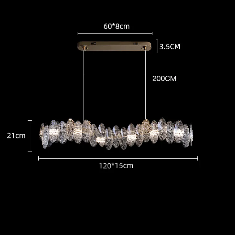 Реечный светильник с эллиптическими хрустальными пластинами с эффектом стекающих капель