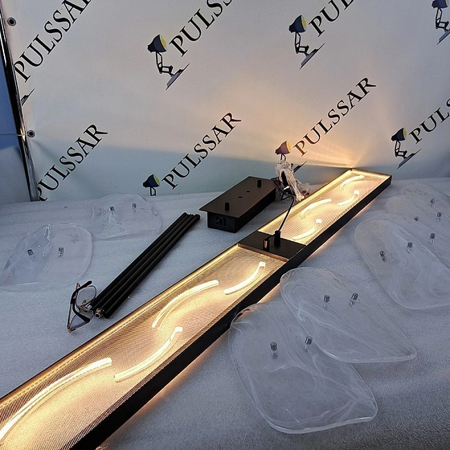 Светодиодный реечный светильник на струнном подвесе с латунными изогнутыми рассеивателями оригинальной формы. Световая серия «Flame Wave» - это коллекция впечатляющих светодиодных люстр, созданных с использованием инновационных дизайнерских решений. Эти люстры являются истинным произведением искусства и превосходным дополнением для любого интерьера.