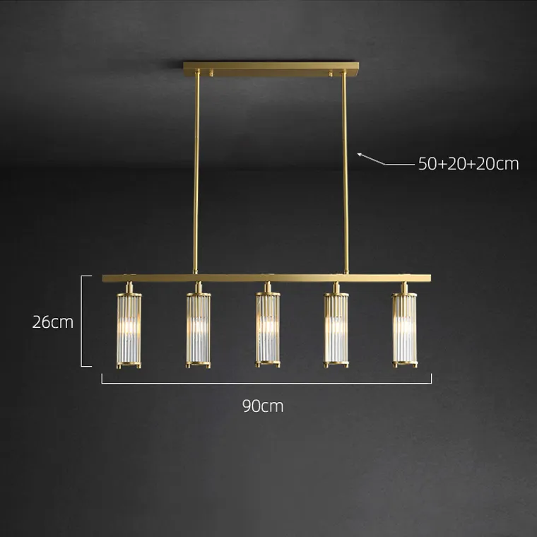 Реечный светильник с цилиндрическими плафонами из стеклянных стержней в бронзовой оправе
