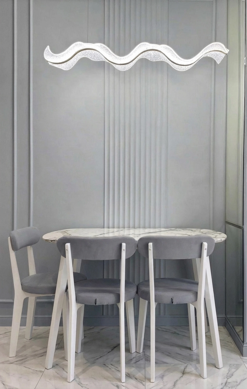 Реечная люстра LARSERIC - это серия светодиодных светильников, которая привнесет современность и стиль в ваш интерьер. Светильники имеют прозрачный волнистый корпус с точечным паттерном, что создает уникальный световой эффект. Форма плафона изогнутая и фигурная, что добавляет элегантности и разнообразия в дизайн.