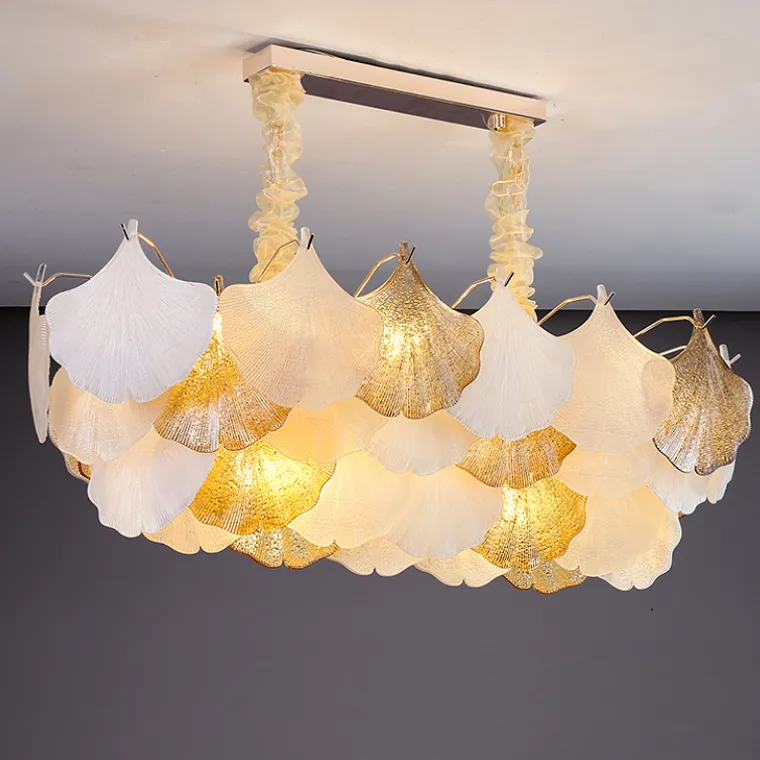 Рядный светильник с белыми и янтарными рассеивателями из матового стекла с природными мотивами