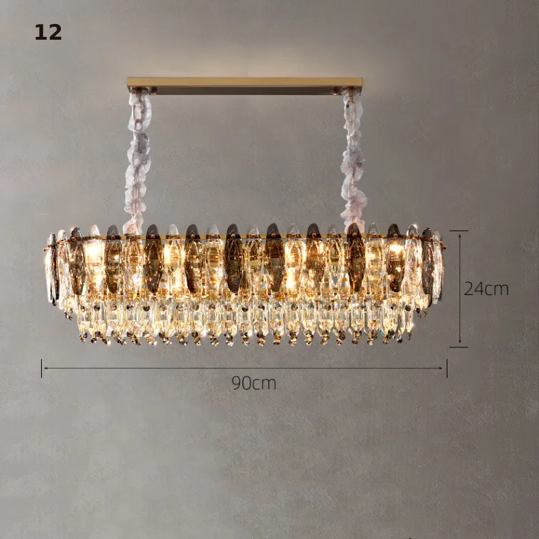 Серия двухъярусных реечных светильников с миндалевидными рассеивателями из прозрачного и дымчатого хрусталя