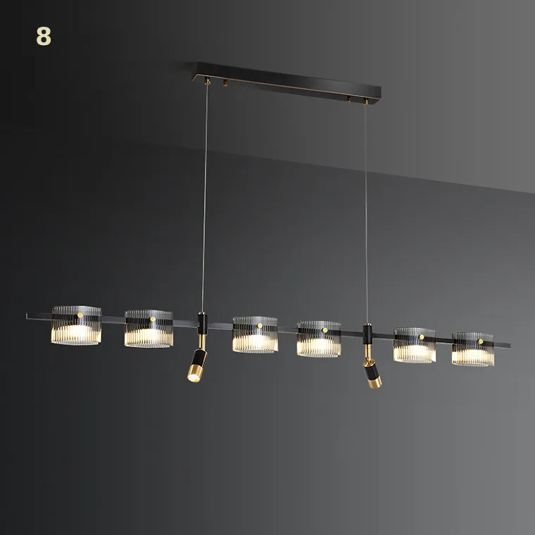 Люстра просто супер, в ней всё идеально. Высота для моего потолка в кухне-гостиной подошла оптимально. Плафоны интересной формы, из ребристого стекла. Рейка металлическая, мне больше в чёрном цвете понравилась. И вот эти дополнительные споты тут очень в тему. Их можно крутить как хочешь, направлять свет в нужные места. Ещё и димер есть, яркость можно менять.