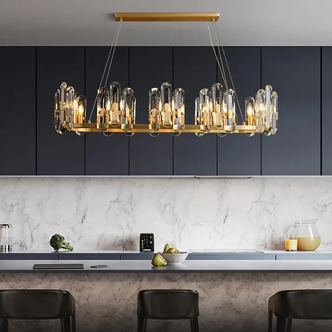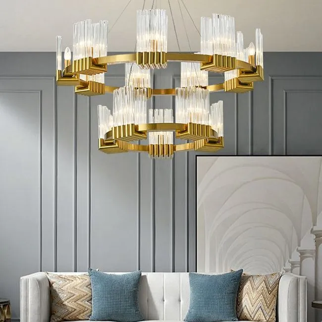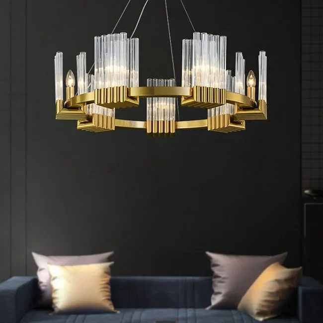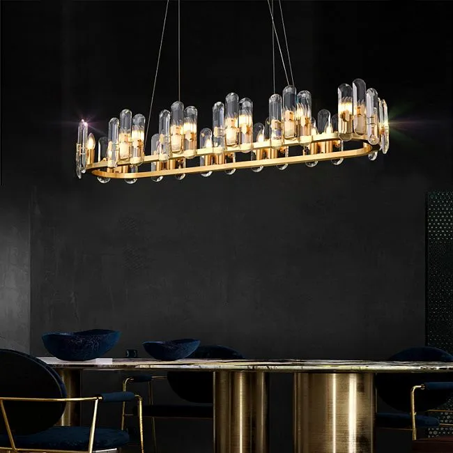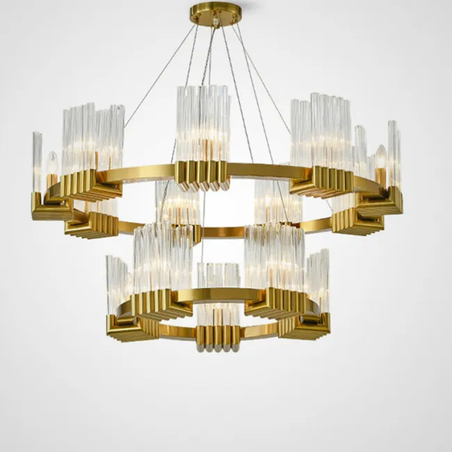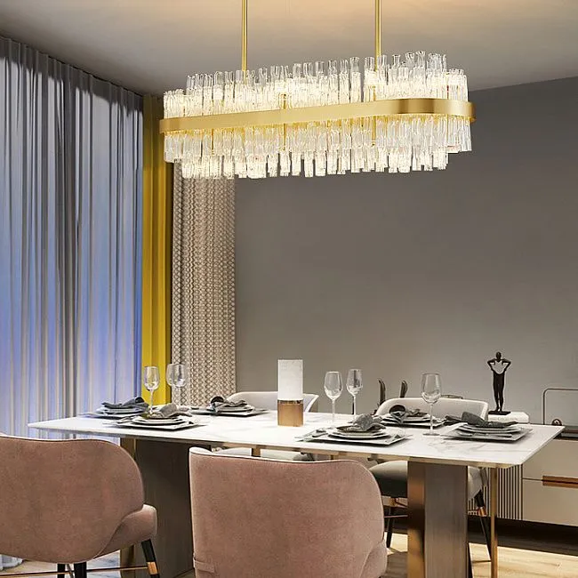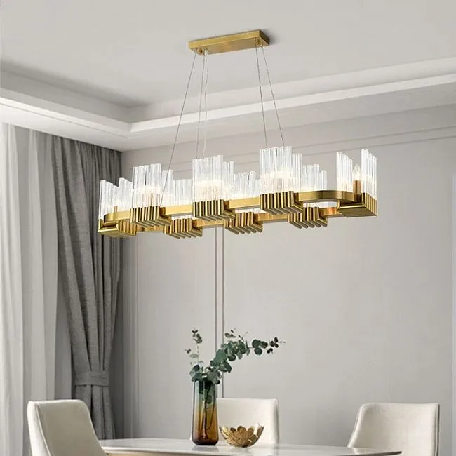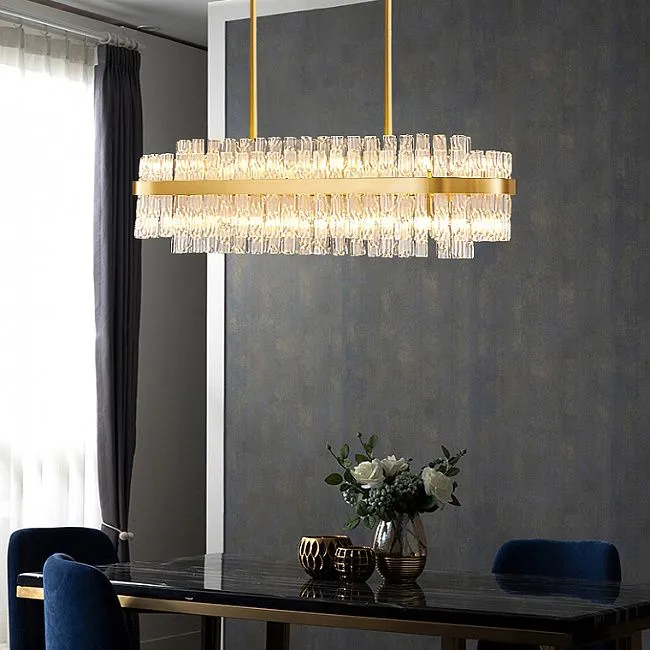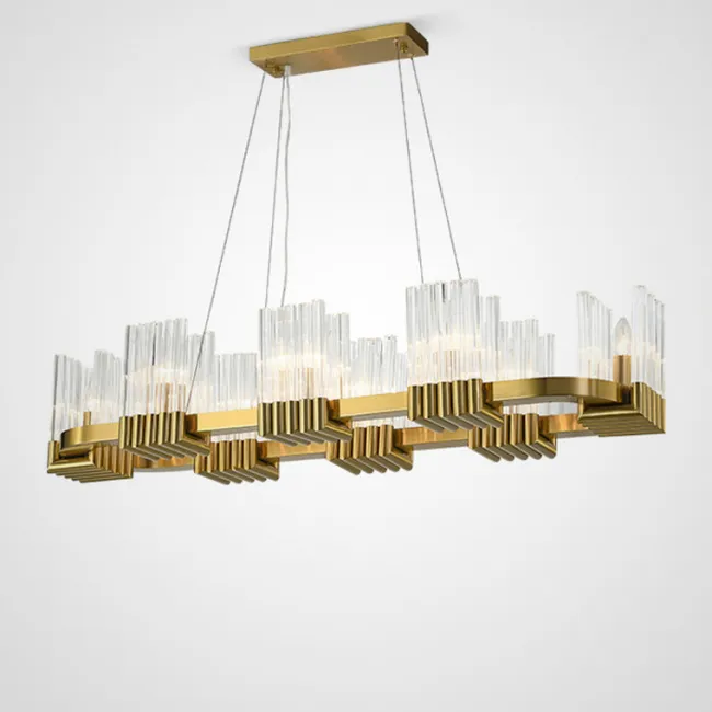 Серия реечных светильников с рядами вытянутых цилиндрических рассеивателей из прозрачного стекла