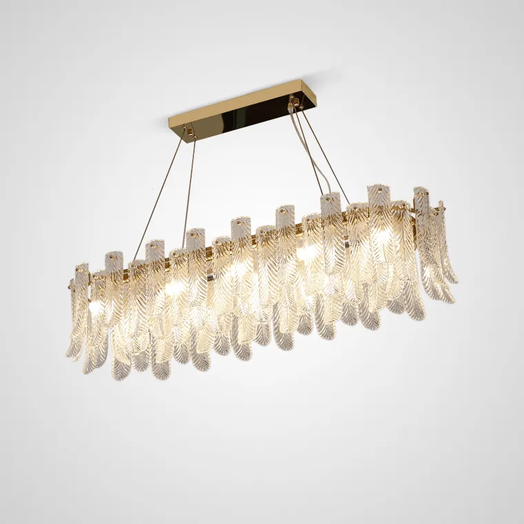 Серия реечных светильников с прозрачными рассеивателями в форме перьев из рельефного стекла