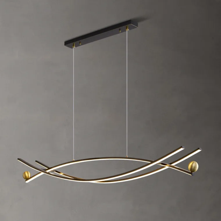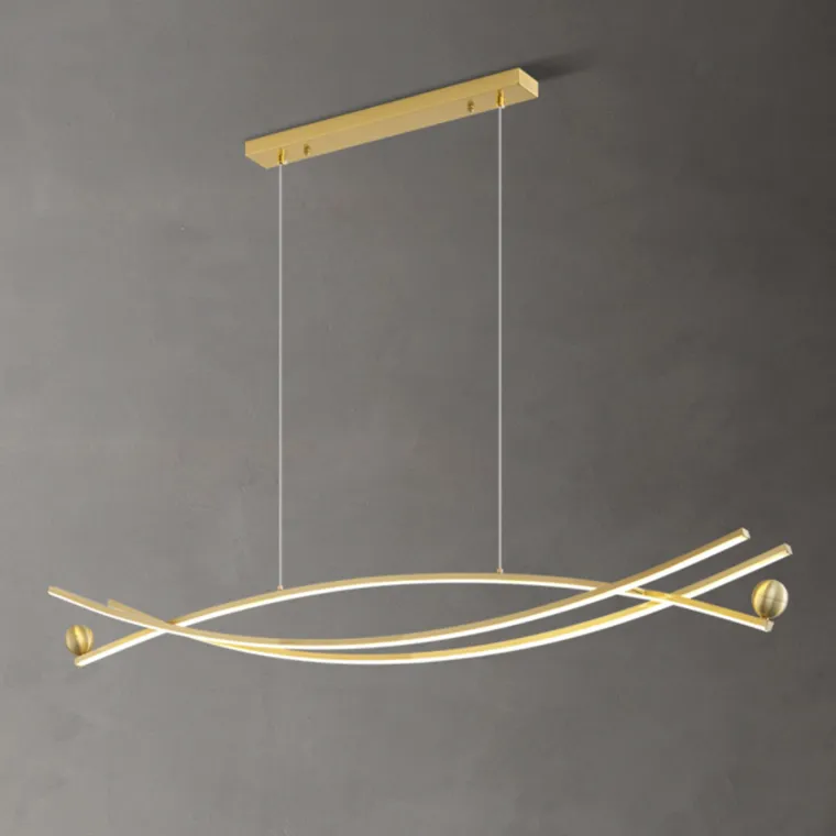 Серия реечных светодиодных люстр с дугообразными плафонами и декоративными шарами на концах из натуральной латуни