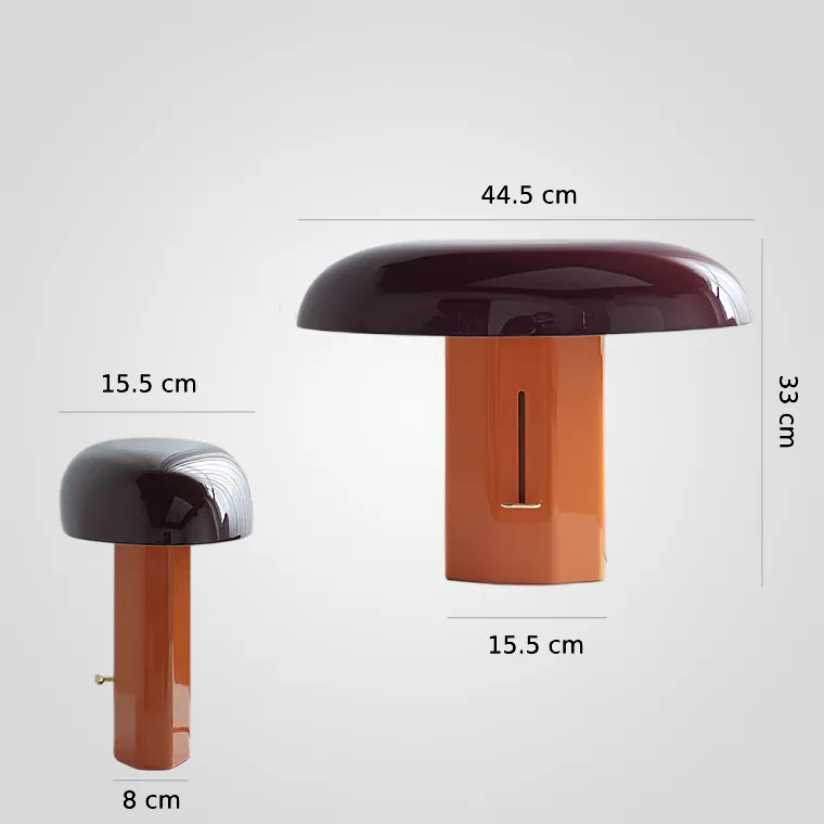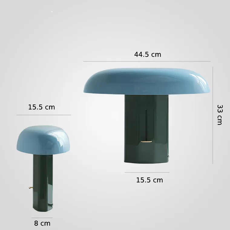 Серия настольных лампа с металлическим корпусом и глянцевым верхом в ярких насыщенных тонах