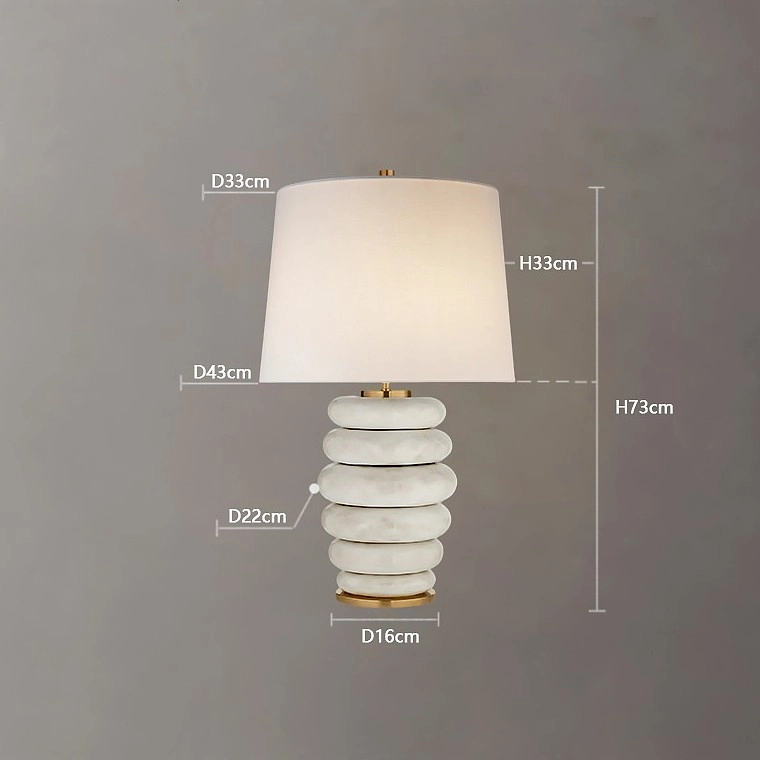 Настольная лампа с текстильным абажуром и оригинальным основанием в виде мраморных колец