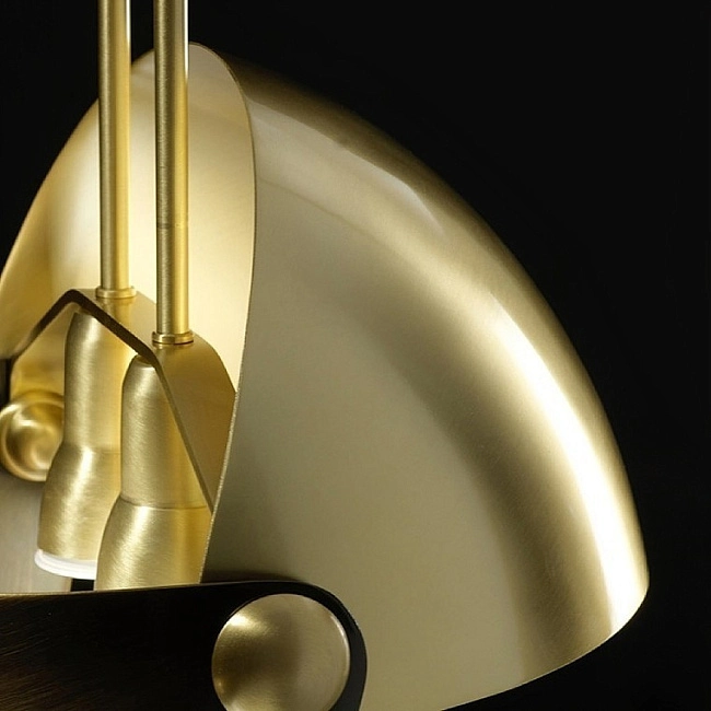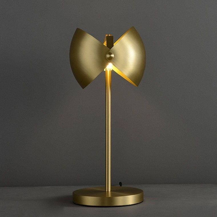 Настольная лампа оригинальной формы с металлическим рассеивателем в виде двух скрепленных сферических сегментов