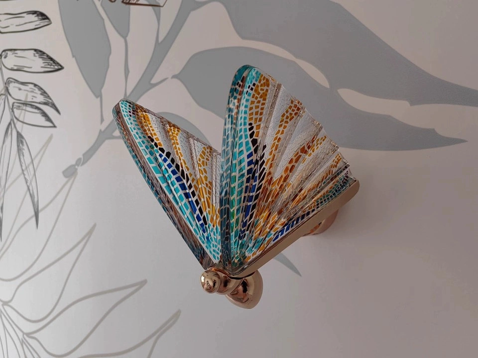 Бра AMELIS COLOR WALL - это впечатляющий настенный светодиодный светильник, который превратит вашу стену в настоящее произведение искусства. Вдохновленный нежностью и красотой бабочек, он выполнен в виде золотых бабочек с ажурными цветными крыльями.