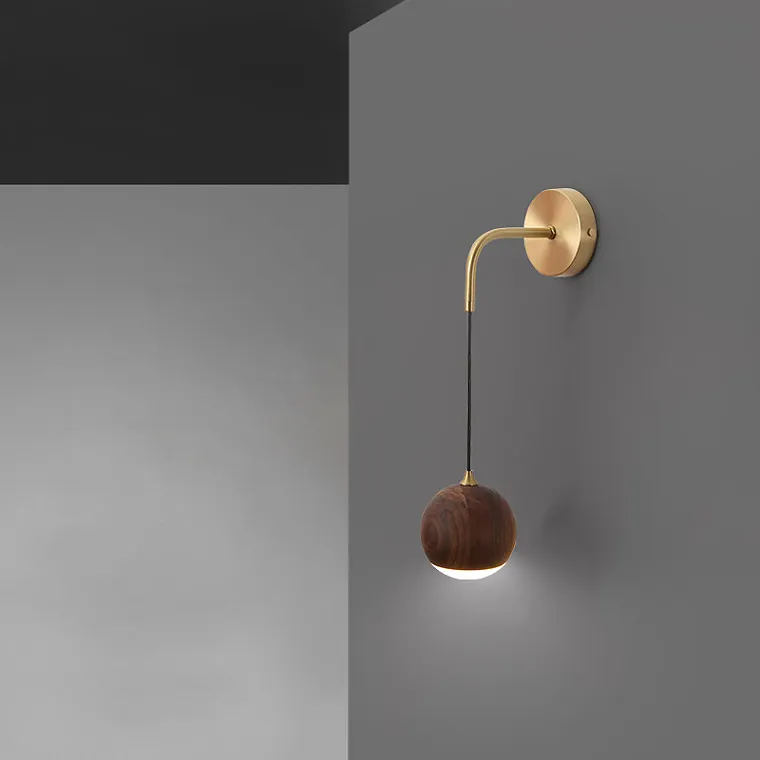 Настенный светодиодный светильник с шарообразным плафоном из темного дерева