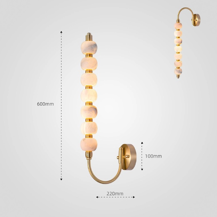Настенный светильник бусы с овальными плафонами из мрамора на дугообразной стойке