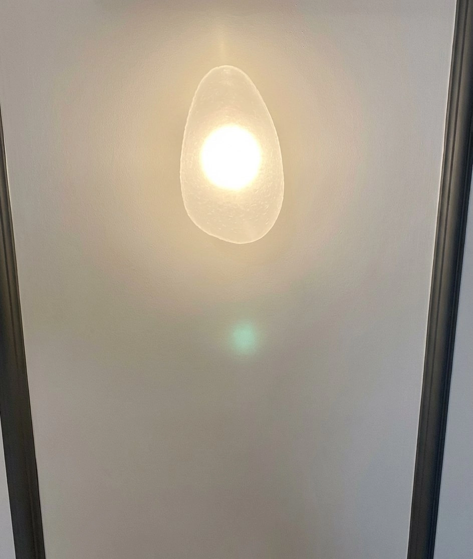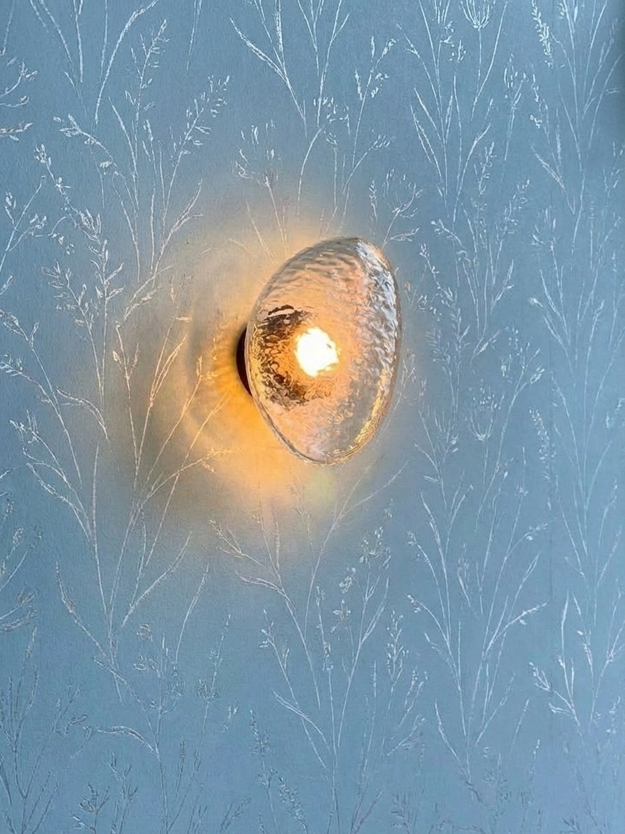 Серия настенных светильников с ассиметричными стеклянными плафонами ручной работы, напоминающими овальные камни